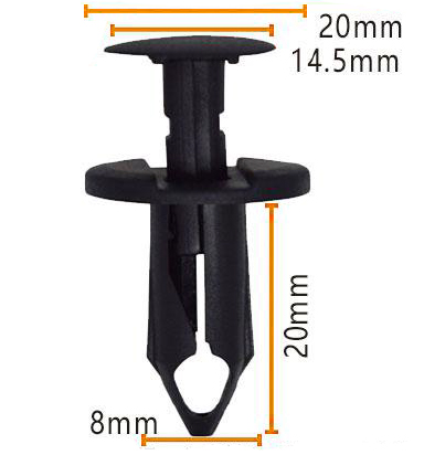 ক্লিপটির দেহটি 20 মিমি দৈর্ঘ্য পরিমাপ করে এবং 8 মিমি প্রশস্ত বেসে টেপারগুলি নীচে নেমে যায়, এটি এটিকে খুব সহজেই জায়গায় ফিট করে এবং চাপের মধ্যেও স্থিতিশীলতা বজায় রাখতে দেয়। এই ক্লিপগুলির অনন্য নকশা তাদের মোটরগাড়ি, নির্মাণ এবং উত্পাদন সহ বিস্তৃত শিল্পে ব্যবহার করার অনুমতি দেয়।