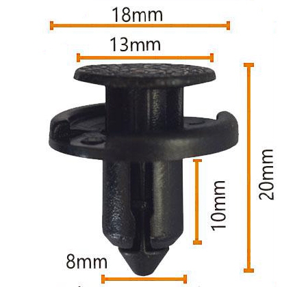 গাড়ী ক্লিপটিতে 18 মিমি একটি টেপারিং শীর্ষ ব্যাস, 13 মিমি একটি নীচের ব্যাস, 20 মিমি দৈর্ঘ্য এবং 8 মিমি একটি পাশের বেধ।