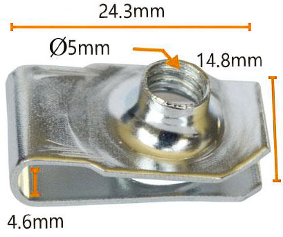 ফাস্টেনার আপনার গাড়ীতে বেঁধে দেওয়া পয়েন্টগুলির সাথে একটি বিরামবিহীন ফিট নিশ্চিত করে, প্রস্থে 24.3 মিমি এবং উচ্চতা 14.8 মিমি পরিমাপ করে সুনির্দিষ্ট সামগ্রিক মাত্রাগুলি গর্বিত করে। অতিরিক্তভাবে, চিত্রের নীচে উল্লিখিত 4.6 মিমি দৈর্ঘ্য একটি নির্দিষ্ট অংশের একটি সমালোচনামূলক মাত্রা উল্লেখ করতে পারে, যা পণ্যের পেশাদারিত্ব এবং নির্ভুলতার উপর আরও জোর দিয়ে।